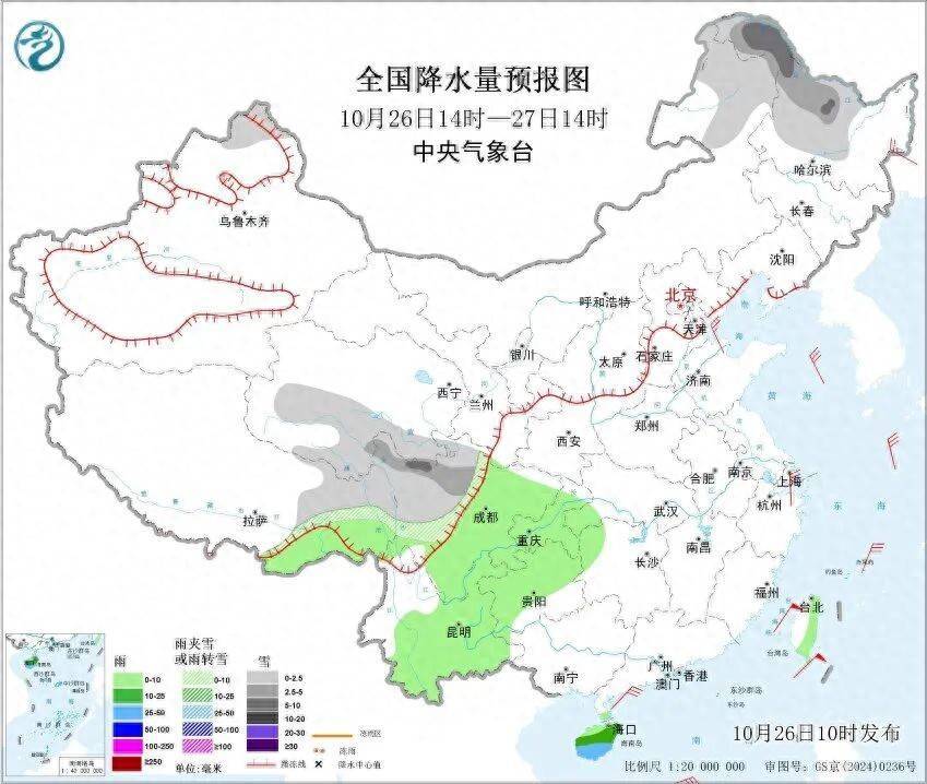 今明两天(10月26至27日)凡资配,随着冷空气东移南下,内蒙古东北部、黑龙江等地有较强降雪,华北、东北将出现明显降温,大部地区的气温将降至偏低水平,早晚冷意凸显。